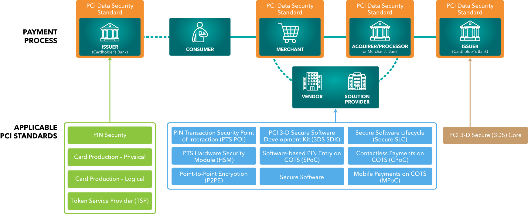 This diagram notes applicable PCI Security Standards. Contact payments brands for any related compliance programs.